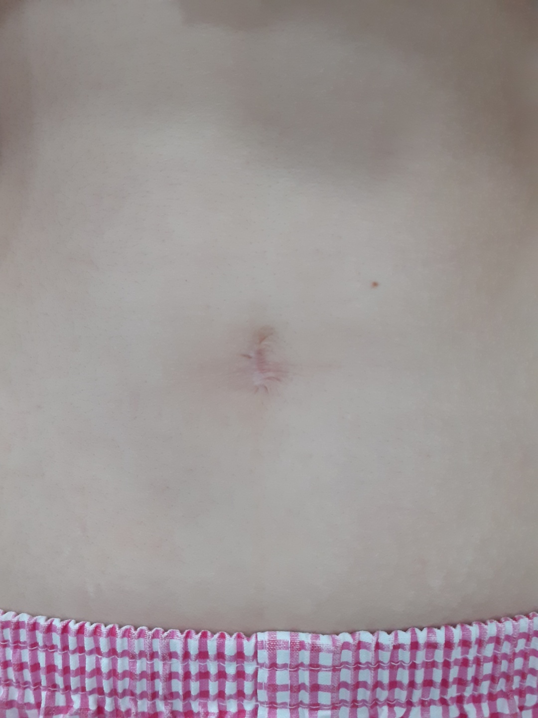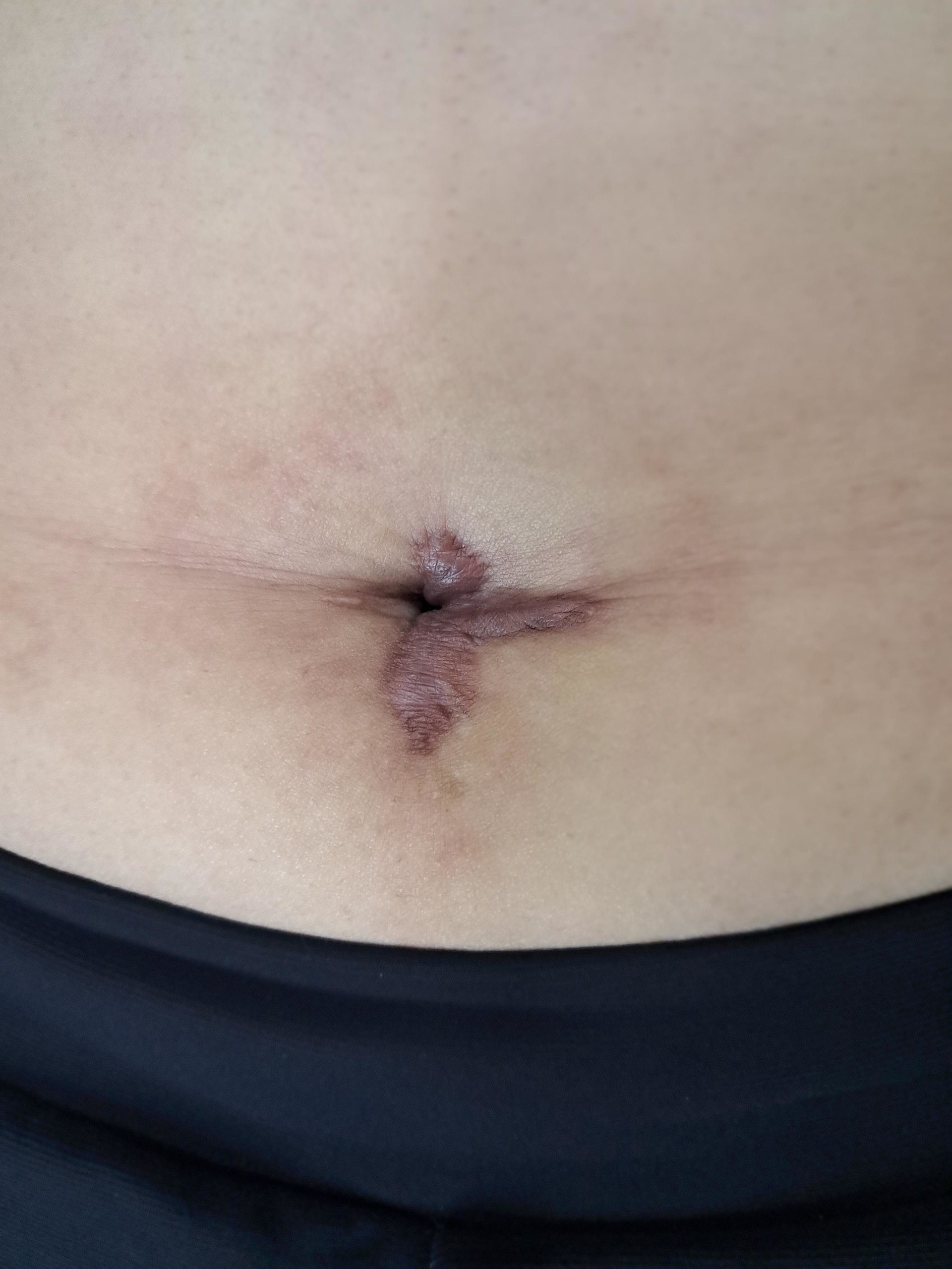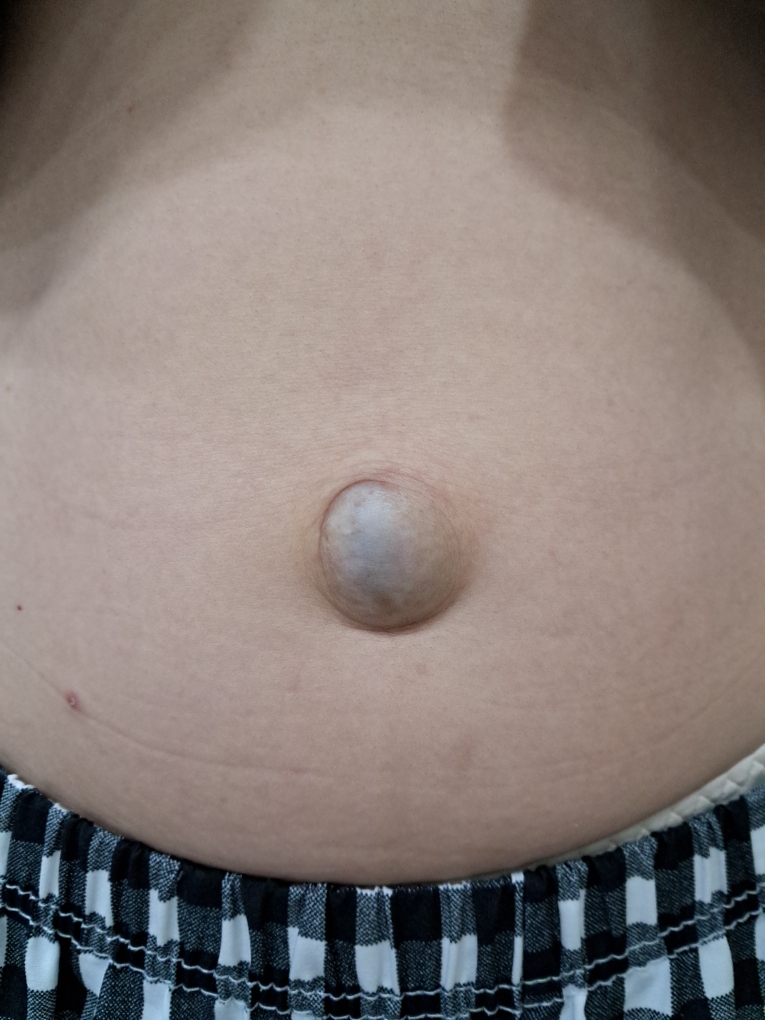 2차적으로 배꼽 탈장이 생겨 배꼽 모양