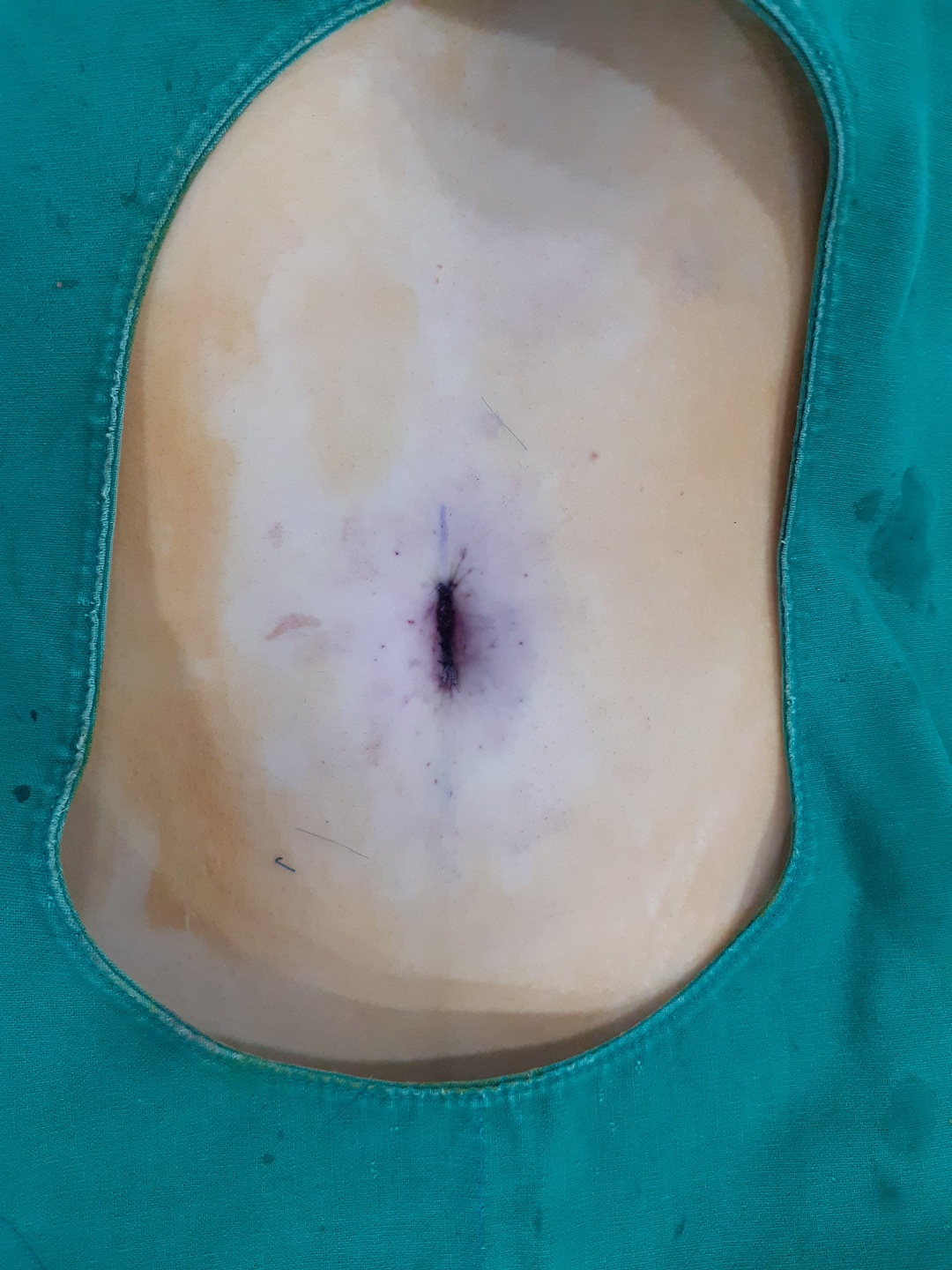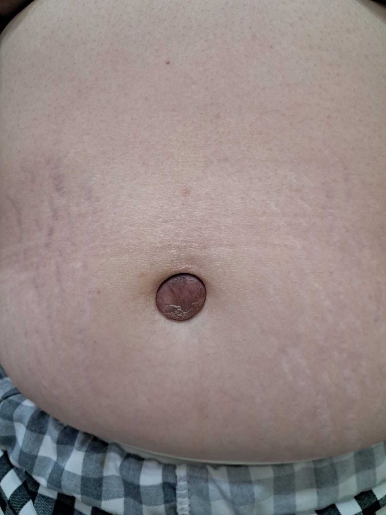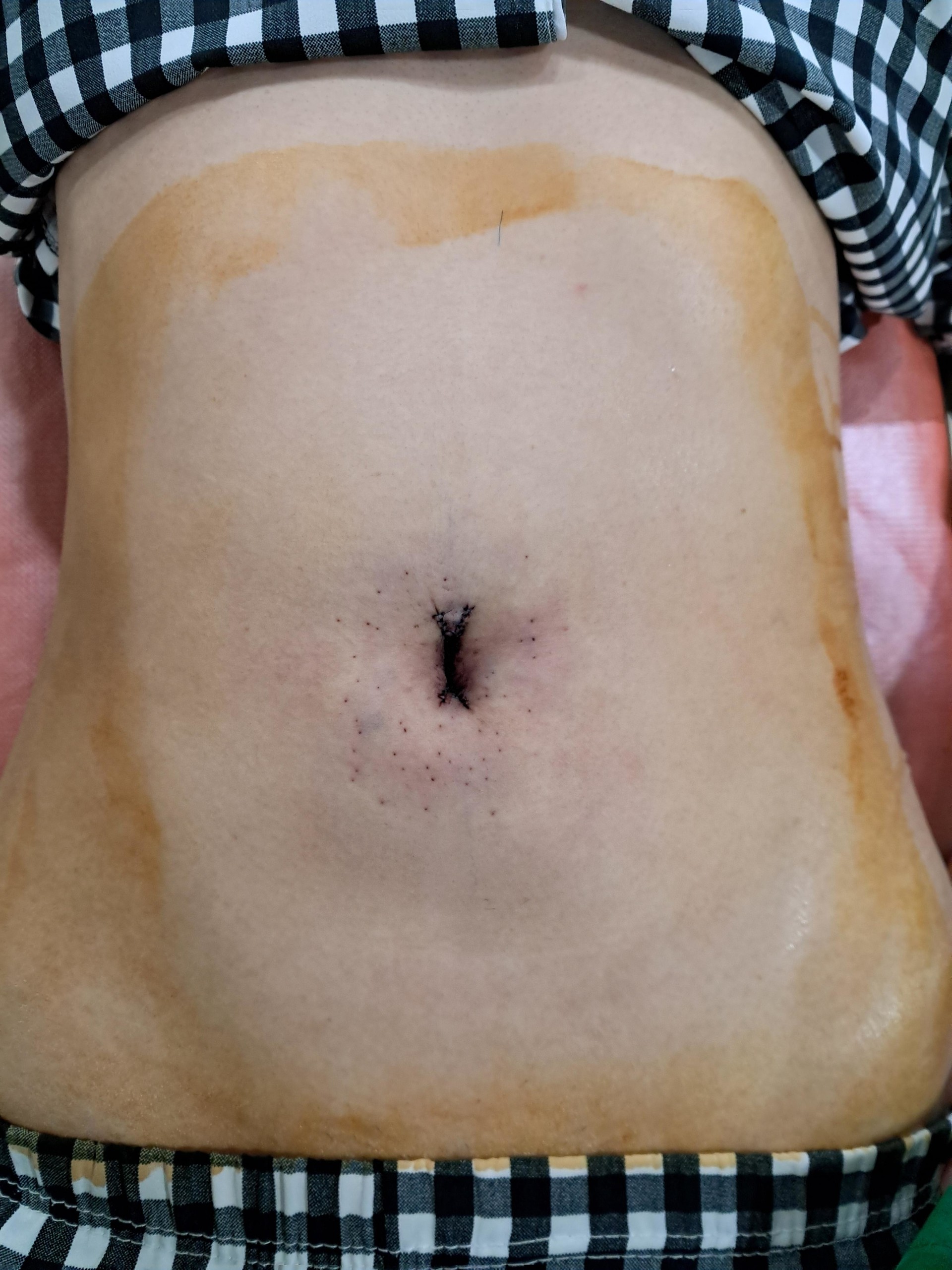 2차적으로 배꼽 탈장이 생겨 배꼽 모양